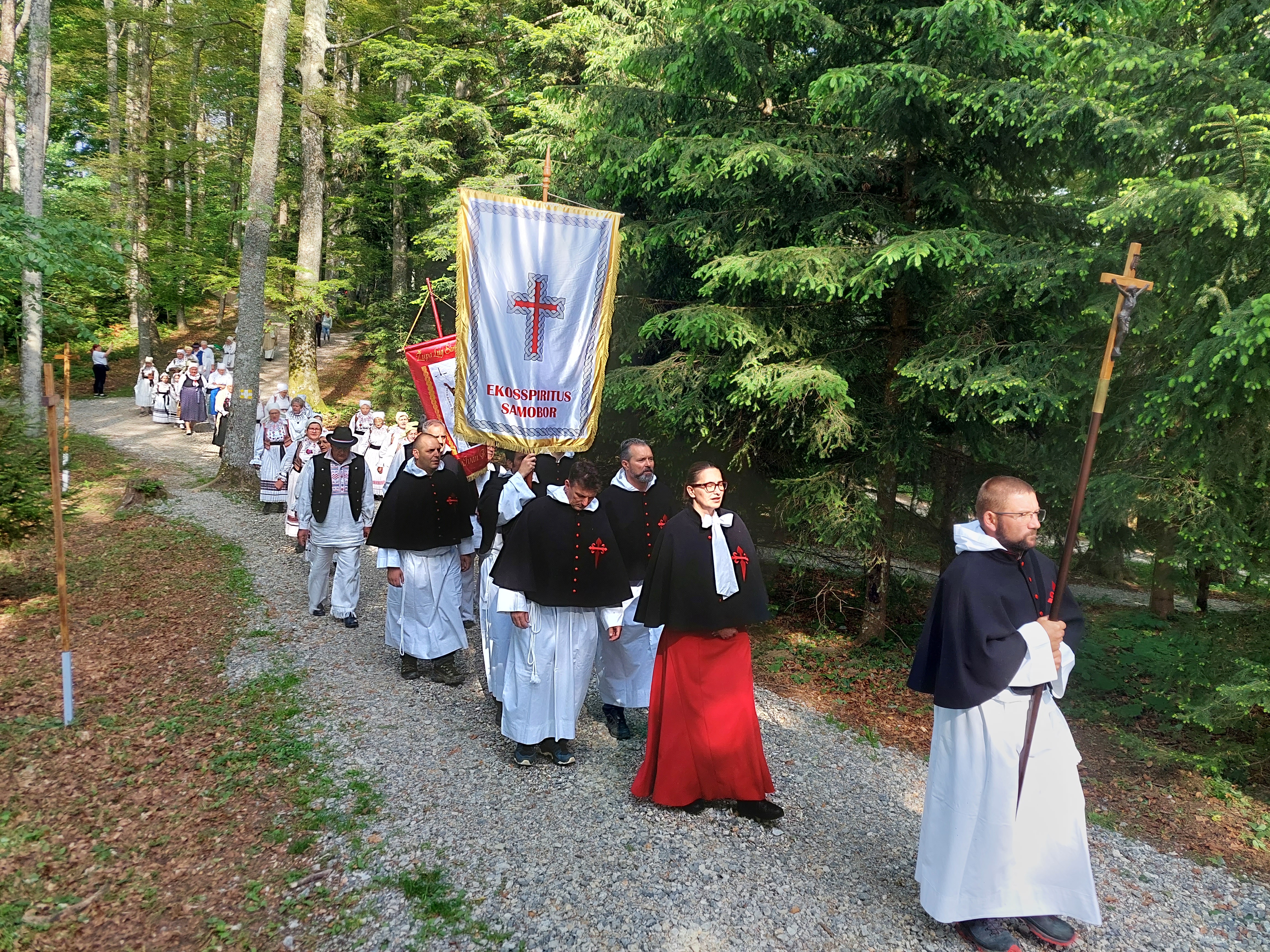 Druga skupina pješaka krenula je iz Zagreba uspinjući se na Sljeme starim hodočasničkim putem tako da je pješaka sve zajedno bilo sedamdesetak. Na Sljemenu su hodočasnike pješake dočekali putnici koji su pristigli autobusima i osobnim automobilima, njih preko 150.