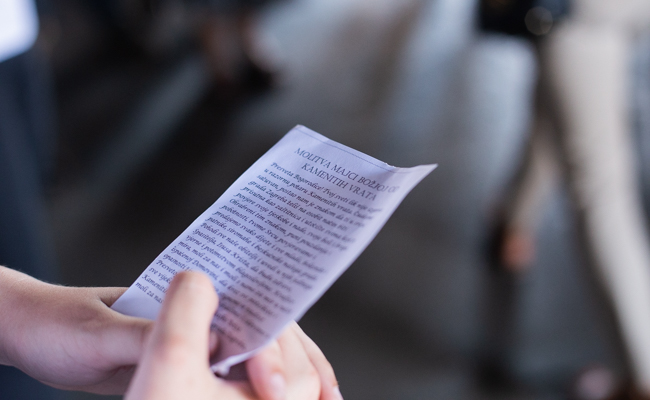 Po dolasku na Kamenita vrata srednjoškolci su izmolili molitvu Majci Božjoj od Kamenitih vrata te tri Zdravomarije s posebnom nakanom za uspješan dovršetak školske godine.