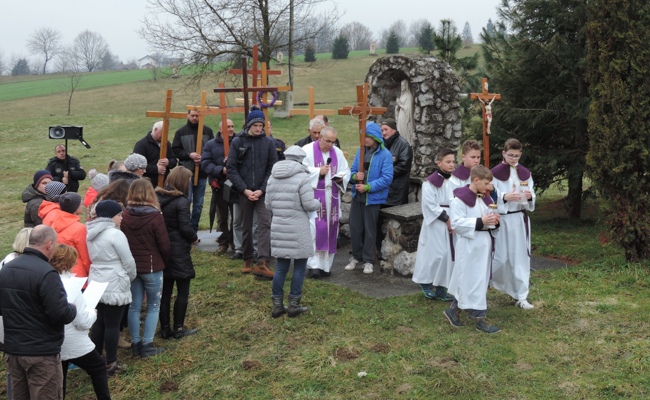 Unatoč hladnoći i vjetru, stotinjak vjernika uputilo se iz svojih mjesta prema župnoj crkvi, gdje su zajedno s ostalim župljanima prisustvovali pobožnosti križnoga puta na otvorenome. Križni put, inspiriran životom bl. Alojzija Stepinca predvodili su mladi i članovi župnog pastoralnog vijeća.