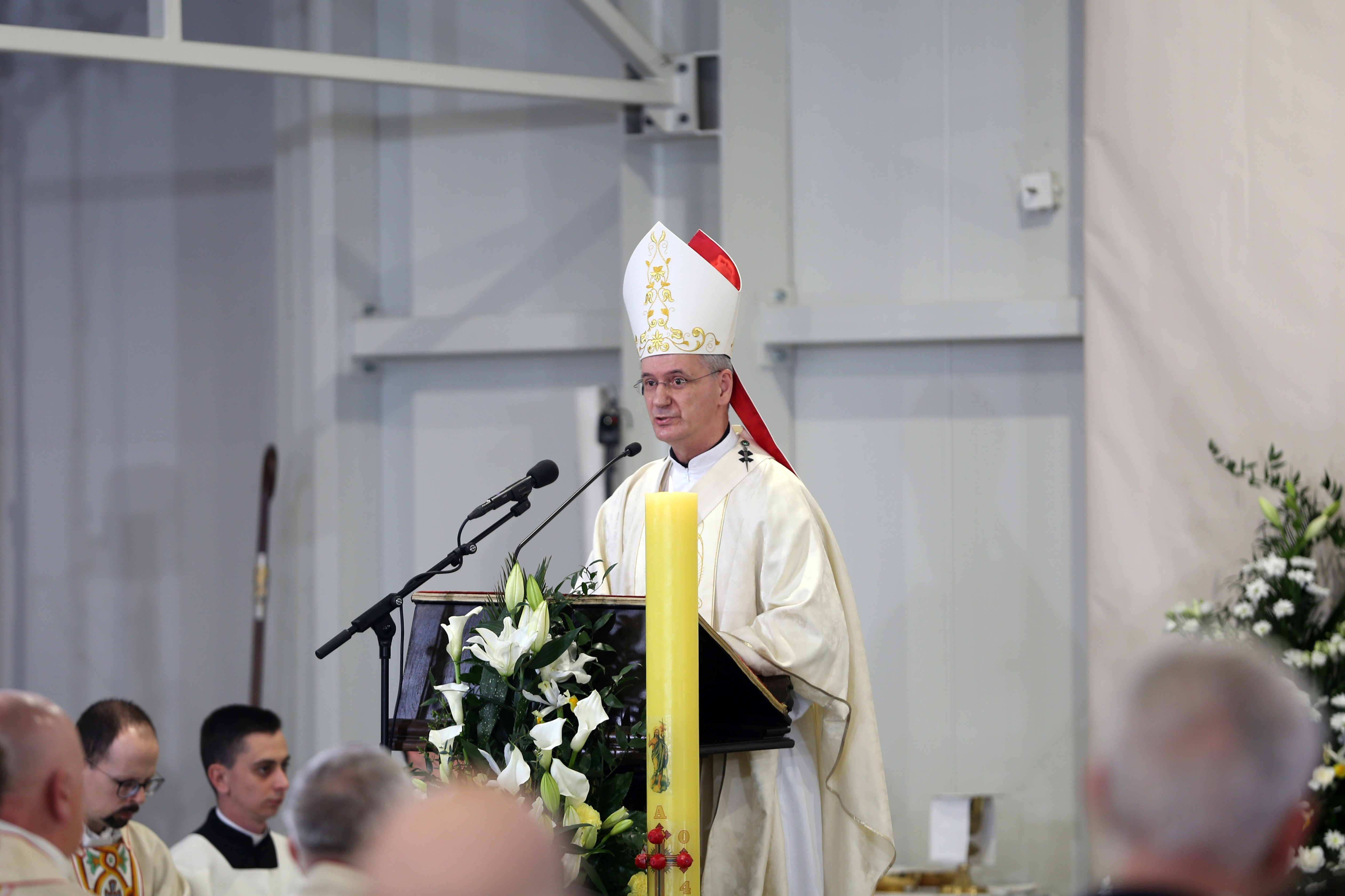 Slušali smo riječ Božju koja nas je uvela u tajnu trajne Gospodinove prisutnosti među nama, ali i onoga što smo mi postali te što smo pozvani biti u punini, zahvaljujući Kristovoj pobjedi nad smrću. Uskrs za nas kršćane nije tek davni događaj koji nema nikakve veze s našim životima. Naprotiv, Uskrs govori o našim sadašnjim životima. Govori o tome što se s nama i sa svijetom zbilo po Kristovu uskrsnuću. Upravo to zaboravljamo: da nas Uskrs neizostavno poziva da vidimo sebe i svijet u Kristu i živoga Krista među nama i u svijetu, kako bismo i mi Kristovski živjeli u odnosu prema drugima i svijetu. Poziva nas da podignemo glave i da se uspravimo iz stanja pognutosti pod teretom grijeha i smrti.