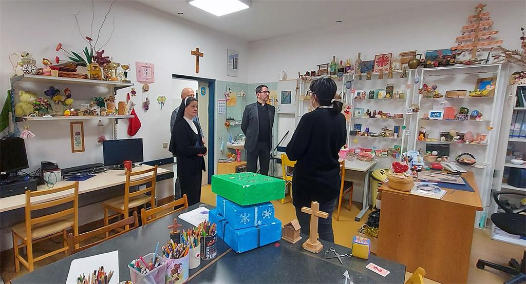 U susretu s korisnicima i zaposlenicima fra Tomislav se osvjedočio koliko ljubavi i predanja ulažu zaposlenici i volonteri u njegu, skrb, odgoj, rehabilitaciju i integraciju korisnika. Iskazao je bezuvjetnu podršku Hrvatskog Caritasa u skrbi za korisnke te prilikom posjeta za potrebe korisnika uručio digitalni logopedski set vrijedan oko 3.200 eura koji će biti značajna pomoć stručnom radu s korisnicima.
