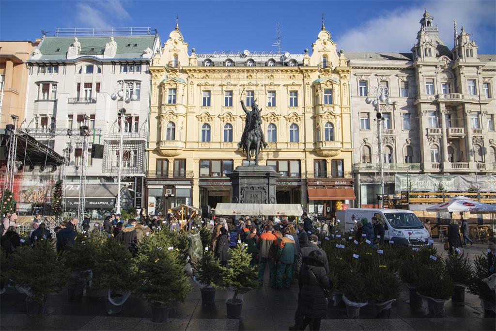 Dvjesto drvaca obične i srebrne smreke te Pančićeve omorike s korijenom, dar Hrvatskih šuma Hrvatskom Caritasu, nije bilo dovoljno za sve zainteresirane Zagrepčane i Zagrepčanke koji su tijekom jutra pohrlili na središnji zagrebački trg. Privremena crnogorična šumica podno i oko spomenika ubrzo se prorijedila a već i prije nego što je top s Lotršćaka označio podne, svako je drvce bilo na putu ka svojemu novom blagdanskom domu.