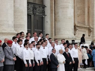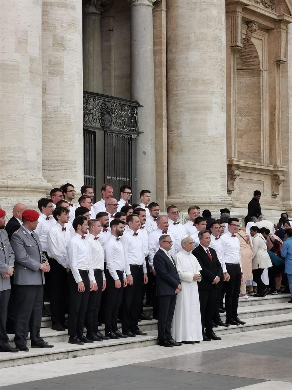 Na početku audijencije Zbor je izveo skladbu “Slavopjev” Ivana pl. Zajca dok je samom Svetom Ocu otpjevao Aleluju iz skladbe “Mi treba da se hvalimo” don Miha Demovića.