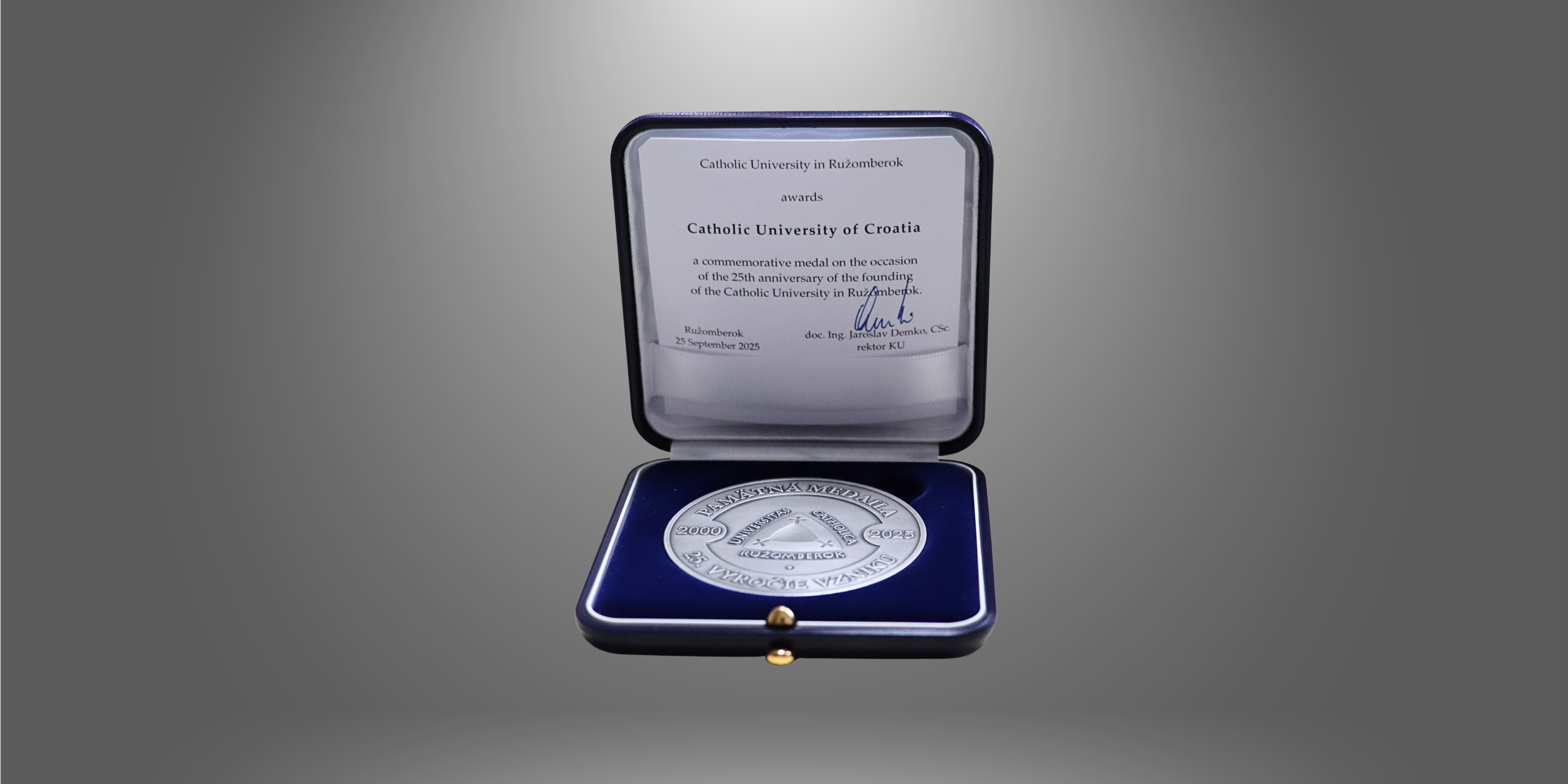 Katoličko sveučilište u Ružomberoku, kojemu je osnivač Biskupska konferencija Slovačke, svečano je 25. rujna 2025. proslavilo 25. obljetnicu osnutka. Tom je prigodom na svečanome akademskom činu rektor Sveučilišta u Ružomberoku prof. dr. sc. Jaroslav Demko dodijelio medalje zahvalnosti zaslužnim dionicima života i djelovanja toga sveučilišta, kao i ustanovama povezanima s njegovim razvojem. Među dvadeset i pet primatelja medalje tri su inozemna partnerska sveučilišta, a među njima i Hrvatsko katoličko sveučilište. Medalju je uime rektora prof. dr. sc. Željka Tanjića primio njegov izaslanik dr. sc. Ante Crnčević, prorektor za kvalitetu, identitet i poslanje Hrvatskog katoličkog sveučilišta.