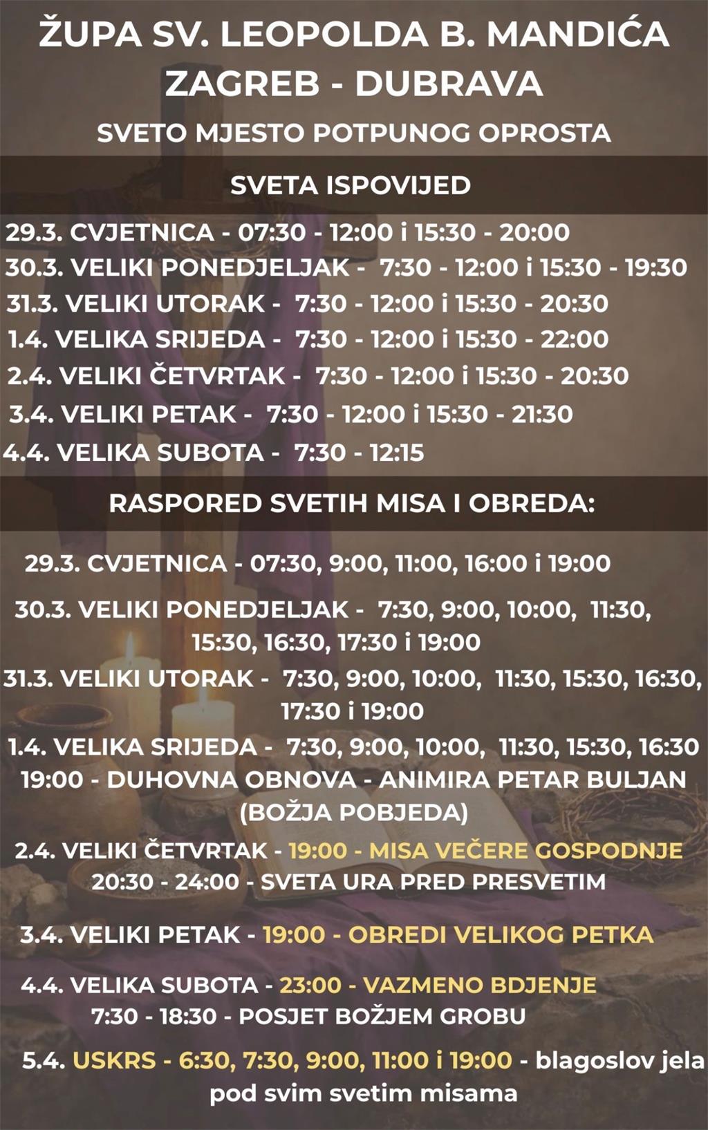 • Veliki petak, 3. travnja: 7.30-12.00 i 15.30-21.30