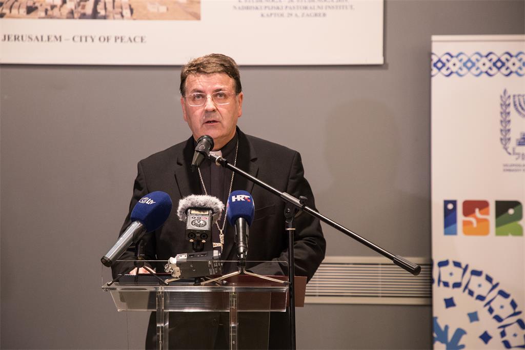 – Skoro točno u dan, prije pet godina (11. studenoga 2014.) u ovome je prostoru otvorena izložba 'Papa Franjo u Izraelu'. Tada sam pri kraju svoga obraćanja naveo riječi Psalma 122, 6: „Molite za mir Jeruzalemov – Šaalú šelóm Jerušalaim“. I evo nas u novome događaju, unutar istoga predvorja kao izložbenoga prostora, ali – što je puno važnije – evo nas ponovno unutar Jeruzalema,