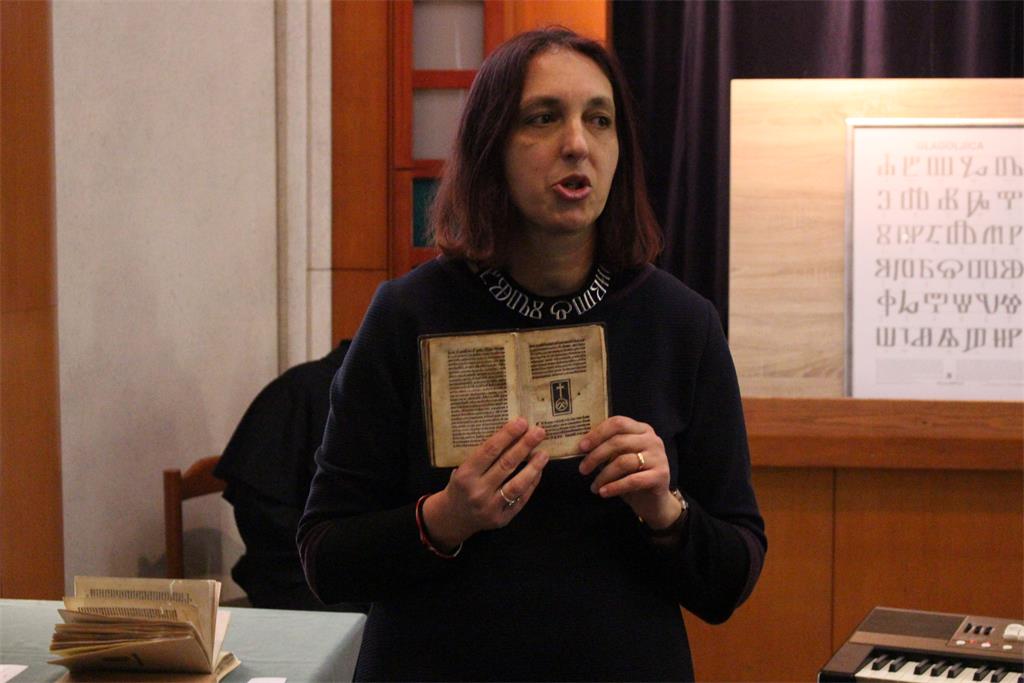de propaganda fide tisane su glagoljskim pismom, ali ne više hrvatskom redakcijom staroslavenskoga/crkvenoslavenskoga jezika, nego ukrajinskom redakcijom, kojom su se služili i katolici istočnoga bizantsko-slavenskoga jezika. Dr. Kuštović na kraju je prezentirala i posljednja hrvatskoglagoljska liturgijska izdanja, a to je