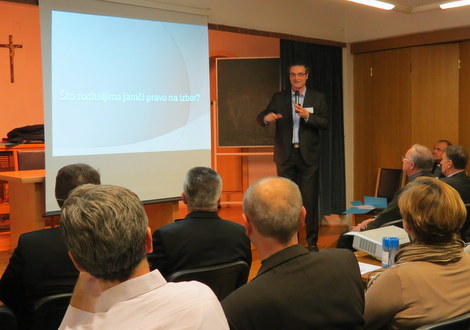 Biskup Šaško je na početku izlaganja predstavio stav Hrvatske biskupske konferencije, naglasivši kako su sporni način donošenja zdravstvenog programa i sadržaj 4. modula koji nosi naziv „Spolno/ rodna ravnopravnost i odgovorno spolno ponašanje“. Sadržaj 4. modula ocijenio je riječju „nekršćanski“. Upozorio je na hrvatske i međunarodne pravne dokumente koji osiguravaju roditeljima pravo na odlučivanje o odgoju i obrazovanju njihove djece u skladu s njihovim vjerskim i filozofskim uvjerenjima. U ime svih hrvatskih biskupa pružio je podršku roditeljima koji ustraju u obrani i zaštiti svoje djece, te u traženju svojih ustavnih prava.