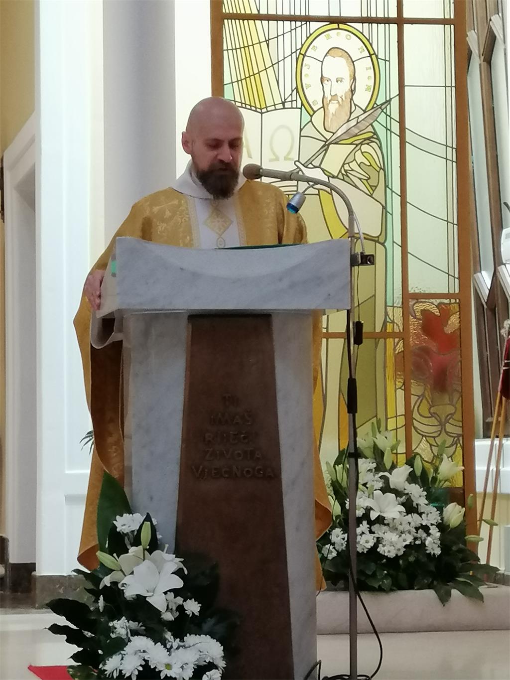 Biskup Radoš osvrnuo se na život sv. Jeronima, koji je kršten tek nakon navršene dvadesete godine života i koji je boravio u Jeruzalemu, kako bi upoznao domovinu Isusa Krista. Sveti Jeronim boravio je u špilji, u kojoj je ponizno spoznao da nije dovoljan studij učenosti, već razumijevanje Božjeg jezika koji dolazi od Božjega dara. Tu je hrabro i učinkovito izvršio svoje poslanje i proslavio Isusa. Posvjedočio je da je pronašao biser na Božjoj njivi, a biskup je i nama svima poželio to bogatstvo pronalaska, da svijetlimo u hodu kroz život, da nas to Božje svjetlo dovede do druge obale, gdje se nalazi Kraljevstvo Božje.