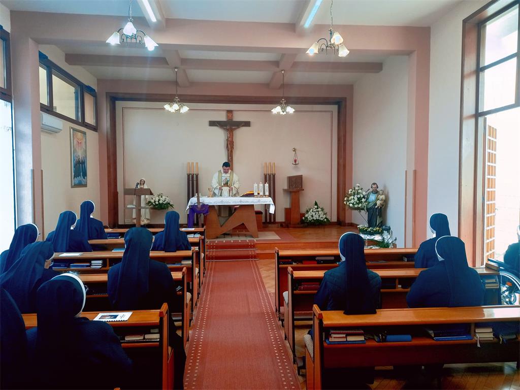 Kapela sv. Josipa smještena je odmah na ulazu u samostan, a istovremeno spaja oba krila samostanskog kompleksa. Svima koji u samostan dolaze i iz njega odlaze time biva vidljivo da je kapela središte samostana. Njezin vrlo simboličan položaj poziv je prije svega svakoj članici zajednice da u svome životu središnje mjesto dadne Bogu, u čemu joj na osobiti način pomaže svakodnevno sudjelovanje na sv. misi i zajedničkoj liturgiji časova. Njen položaj poziv je i svim posjetiteljima samostana da se prije susreta sa sestrama koji trenutak zadrže u susretu s Bogom u osobnoj molitvi.
