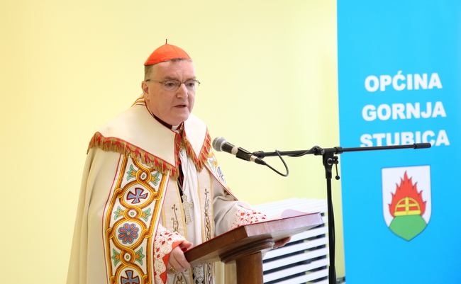 U obraćanju Kardinal je rekao: „Drago mi je da sam danas ovdje. Pozdravljam sve, počevši od predstavnika Predsjednika Vlade gospodina ministra Gordana Grlića Radmana, sve predstavnike državnih, županijskih i općinskih vlasti na čelu s gospodinom načelnikom.
