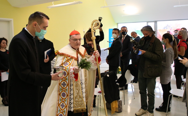 Uslijedila je blagoslovna molitva nakon koje se kardinal Bozanić još jednom obratio okupljenima ponovivši kako je radostan što je danas ovdje na ovom radosnom događaju: „Stavio sam na prvo mjesto ovaj prostor, jer sam time htio pokazati znak kako je to ne samo važno za Crkvu, nego i za društvo i za državu. Želim obilje blagoslova. Želim da što prije dođemo blagosloviti i onaj drugi dio vrtića koji je najavljen. I da to ne bude samo u ovoj župi nego i po drugim našim župama.“