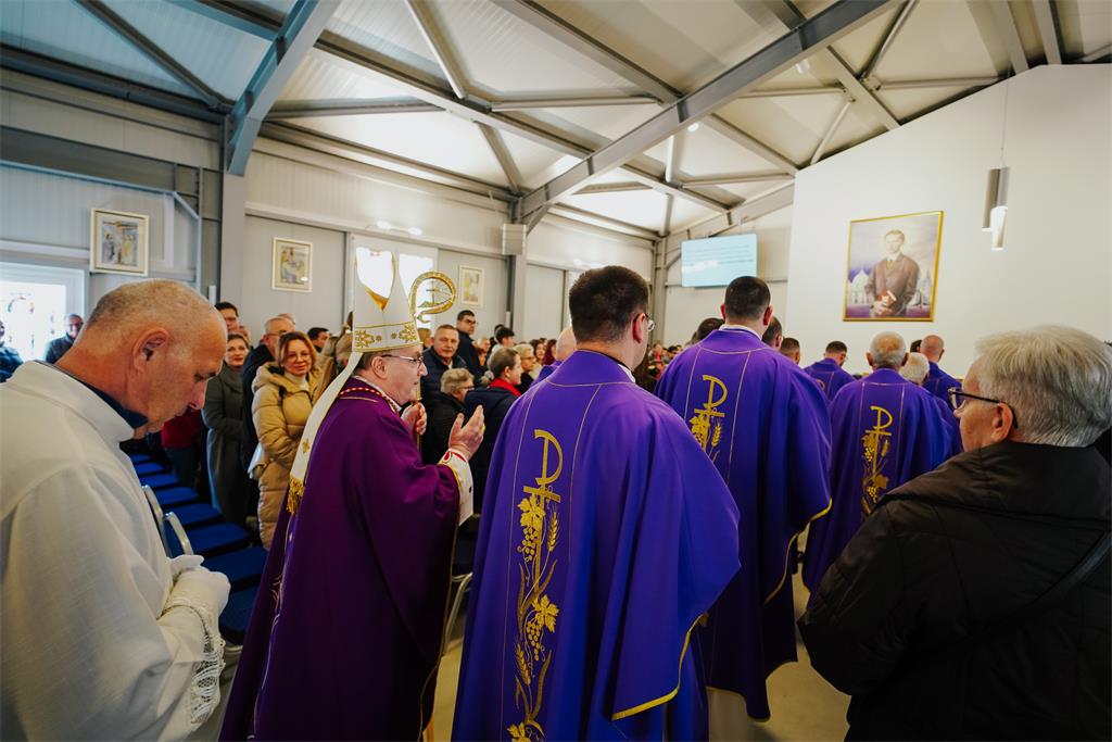 Kardinal je podsjetio kako je ova župa "osnovana 10. veljače, na blagdan blaženog Alojzija 2011. godine. Župa iduće godine slavi 15 godina rasta i djelovanja. Župa - to ste vi, vi ste blagoslov ove župe, vi ste oni koje Isus okuplja i koji želite Isusa slijediti. Molite Isusa da vam dade snagu da uvijek pred vama blista i bl. Ivan Merz i bl. Alojzije Stepinac, svjedok vjere nade i čiste savjesti."