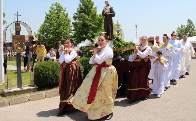Na početku euharistijskog slavlja, pozdravljajući Kardinala, župnik Antun Sente podsjetio je da ova velika i ponosna župa danas slavi svoj godišnji i središnji događaj, svetkovinu sv. Antuna Padovanskog, Sveca svega svijeta. Po primjeru našeg zaštitnika, nadahnuti Duhom Svetim, nastojali smo posljednjih mjeseci kroz pobožnost trinaest utoraka i trodnevnu pripravu učiti govoriti jezikom samog Antuna, onim kršćanskim univerzalnim jezikom djelotvorne ljubavi da bi nas svaki župljanin, hodočasnik, vjernik kojeg god uzrasta, ekonomskog ili društvenog statusa, pa i narodnosti, mogao lako razumjeti – rekao je župnik Sente.