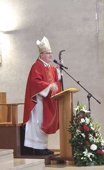 Na samom početku euharistijskog slavlja, Nadbiskupa je uime župnika, vlč. Paola Solarija, pozdravio predsjednik župnog vijeća gosp. Rodolfo Schnyder, zatim predstavnici krizmanika te naposlijetku i fra Slaven Mijatović, uime Hrvatske katoličke misije.
