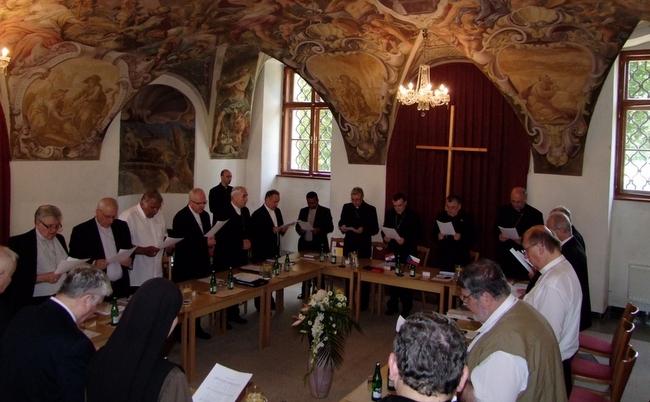Radostan sam što nazočim ovoj plenarnoj sjednici Češke biskupske konferencije. Zahvaljujem predsjedniku biskupske konferencije, praškom nadbiskupu kardinalu Dominiku Duki, na srdačnom pozivu. Nakon lijepog i svečanog jučerašnjeg slavlja, velika mi je radost susresti se s pastirima drage Crkve ove plemenite zemlje i prenijeti pozdrav Hrvatske biskupske konferencije. U ovome svečanom trenutku, drago nam je podsjetiti i oživjeti veze zajedništva koje povezuju naše Crkve, istaknuo je zagrebački nadbiskup kardinal Josip Bozanić na početku svoga obraćanja biskupima Češke biskupske konferencije, okupljenima na svoje zasjedanje u prostorijama liceja „Stojan“ u Velehradu, nakon što je jučer kao Papin izaslanik predvodio veliku proslavu u prigodi 1150. obljetnice dolaska vjerovjesnika sv. Ćirila i Metoda među slavenske narode.