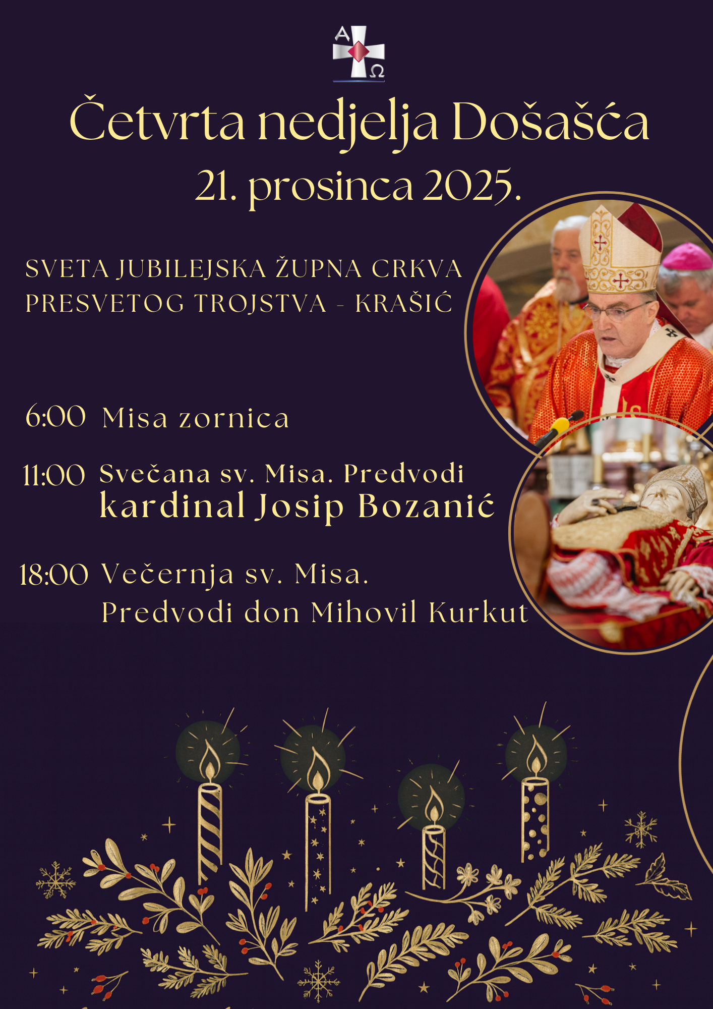 Zagrebački nadbiskup u misu kardinal Josip Bozanić predvodit će na četvrtu nedjelju došašća, 21. prosinca, svečanu svetu misu s početkom u 11 sati u župnoj crkvi Presvetoga Trojstva u Krašiću.