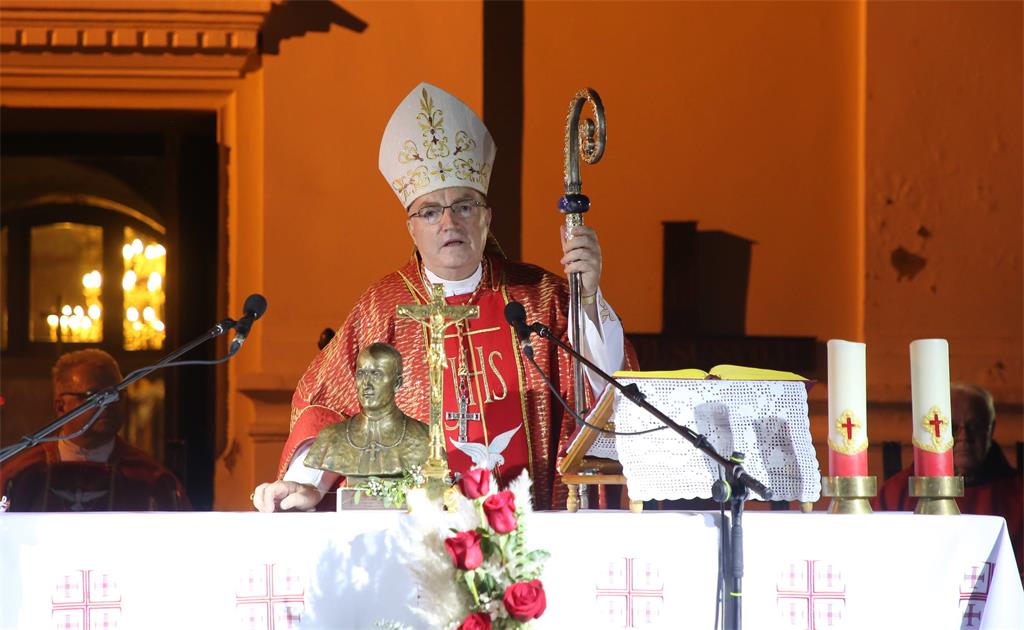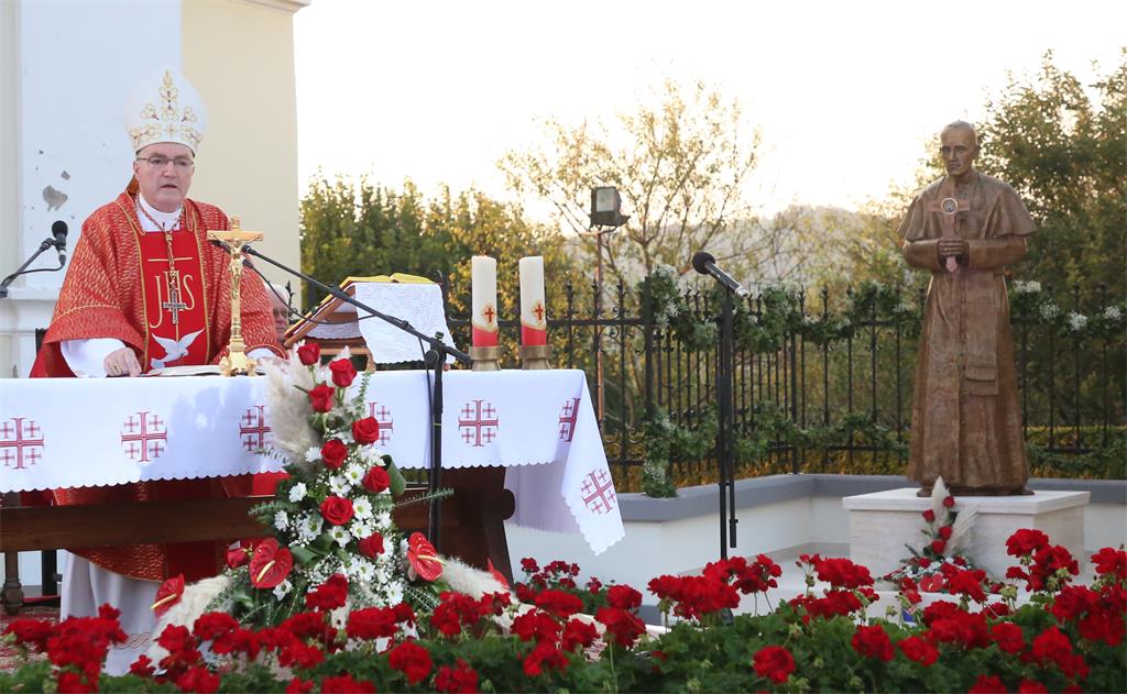 Ističući ustrajnost u nošenju križa sve do smrti i neslomljivo pouzdanje bl. Alojzija Stepinca u Božju spasenjsku ljubav koja nam dolazi po Njegovom križu, Kardinal je rekao okupljenima kako će ih na to odsad trajno podsjećati lik Blaženika postavljen na trgu kraj crkve „i svaki put kad budete dolazili u crkvu u ovaj Božji i svoj dom, Blaženik će vas dočekati govoreći vam – ne bojte se, hrabro, i ja sam nosio križ sve do smrti i nisam se razočarao. U našem Blaženiku tom svjedoku Božje ljubavi i pouzdanja, imamo snažnog zagovornika, osobito obitelji.“