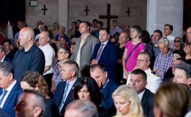 Na svečanom euharistijskom slavlju sudjelovali su predsjednica Republike Hrvatske Kolinda Grabar Kitarović, predsjednik Hrvatskog sabora Gordan Jandroković, predsjednik Vlade Republike Hrvatske Andrej Plenković, predstavnici Hrvatske vojske te javnog i kulturnog života u Republici Hrvatskoj.