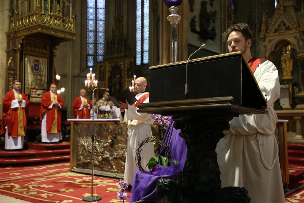 Zagrebački nadbiskup kardinal Josip Bozanić predvodio je u petak 19. travnja u zagrebačkoj katedrali obrede Velikoga petka u zajedništvu s pomoćnim biskupima zagrebačkim mons. Ivanom Šaškom, mons. Mijom Gorskim i pomoćnim biskupom zagrebačkim u miru mons. Valetninom Pozaićem, rektorom zagrebačke katedrale mons. Josipom Kuhtićem, mons. Zvonimirom Sekeljom, rektorom Nadbiskupskog bogoslovnog sjemeništa preč. Anđelkom Košćakom, vlč. Željkom Faltakom, vlč. Andrijom Miličevićem, vlč. Ivanom Lukićem te okupljenim Božjim narodom.