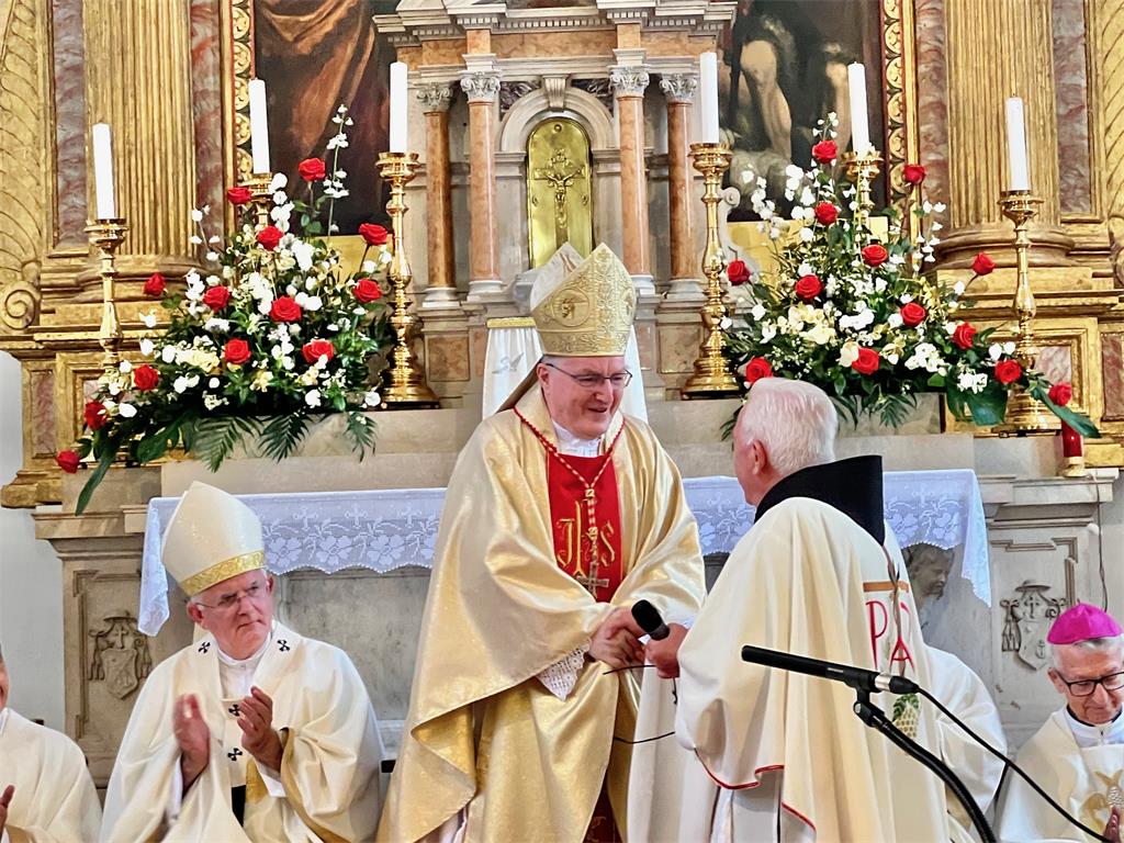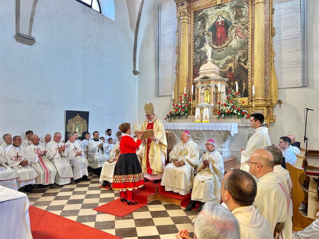 Uime Krčke biskupije i župe Vrbnik biskup Petanjak poklonio je kardinalu Bozaniću kalež i pliticu.