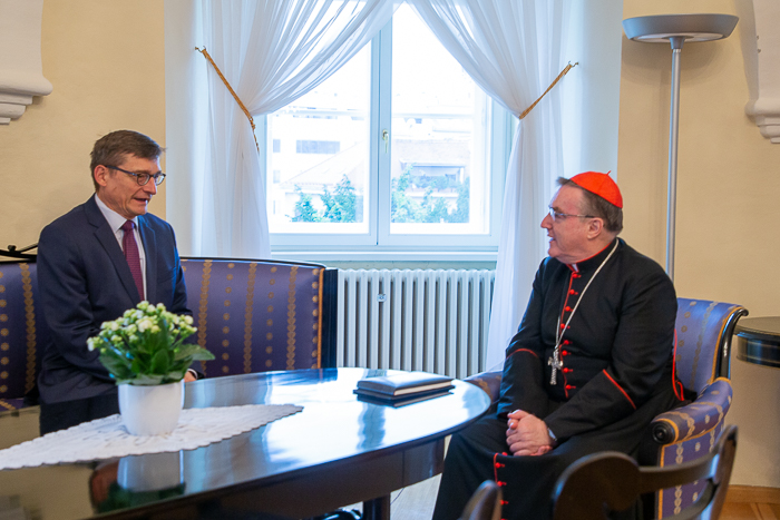 Zagrebački nadbiskup kardinal Josip Bozanić primio je u četvrtak 28. studenoga 2019. u Nadbiskupskom dvoru u Zagrebu u nastupni posjet veleposlanika Republike Austrije u Republici Hrvatskoj Nj. E. dr. Josefa Markusa Wuketicha.