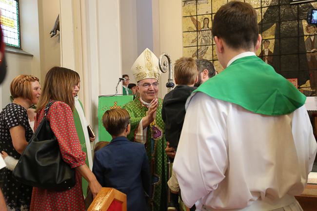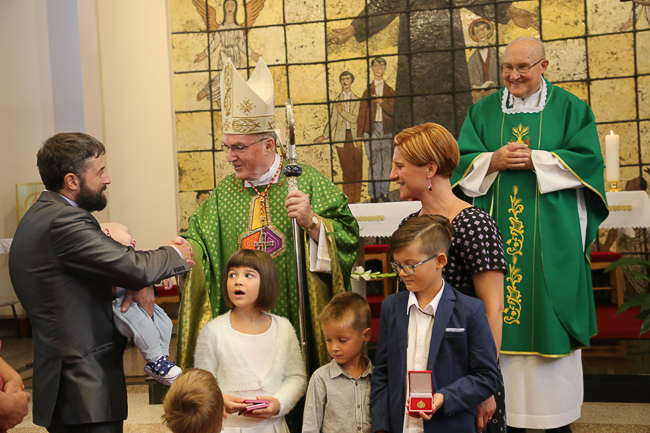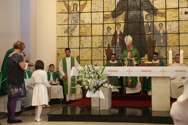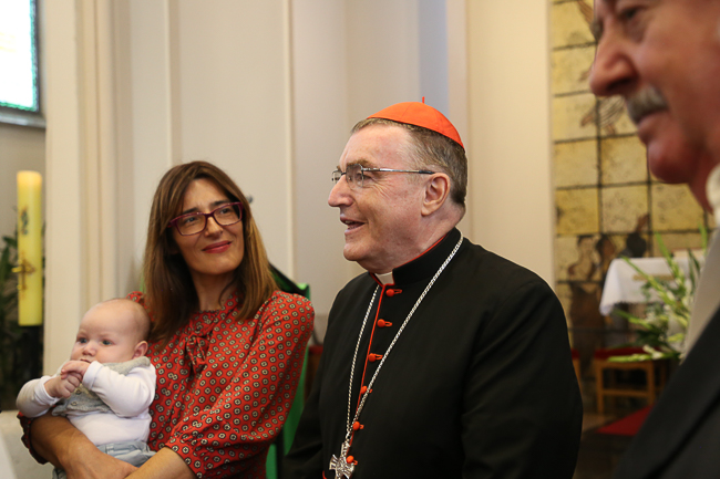 Nakon pričesnoga obreda, Kardinal je ujedno blagoslovio i novo župno svetohranište dok mu se, prije završnoga blagoslova, u uime obitelji i cijele župne zajednice obratila Šimunova majka Dubravka riječima: „Uzoriti gospodine kardinale, mi smo jako sretni i radosni što ste krstili našeg sina Šimuna. Naša cijela župna zajednica raduje se što ste nas pohodili.“ Kardinalu je, u znak zahvalnosti, Šimunova sestra Dora predala svoj crtež župne crkve i buket cvijeća. Kardinalu se je na dolasku također, uime cijele župne zajednice, zahvalio i župnik don Rudolf Belko riječima: „Kada bih ja sada počeo nabrajati sve one divne trenutke i sve uspomene kada smo se u životu sreli, tada bi onda ova misa jako dugo trajala. Stoga, za sve te trenutke naših susreta, a pogotovo danas, na riječi koje ste nam uputili, od srca Vam hvala. I neka Vas Gospodin na tom Vašem životnom putu dalje prati i jača, da, evo, budete snažni i hrabri te i dalje u Crkvi u Hrvatskoj, i ne samo u Hrvatskoj nego i u cijelom svijetu, svjedočite uskrsloga Krista.“