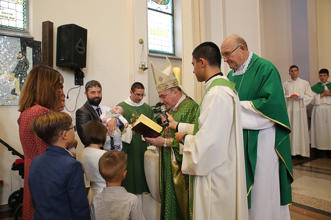 „Za krštenje dijeta, dragi mladi, draga braćo i sestre, netko će možda reći „Pa zašto krstimo dijete, zašto ne počekamo da ono naraste pa da samo izabere dal' će se krstiti ili ne?“ Ali, ni ovo dijete nije samo izabralo dal' će se roditi ili ne. Ono je dar, ono je rođeno od roditelja koji su svjesni da je iza njih onaj vrhovni darovatelj – Bog“, rekao je Kardinal, nastavivši: „Svako dijete, svaki čovjek je u prvom redu dar, dar od Boga posredstvom ljudi i svatko od nas i svako dijete, i prije rođenja, već je ljubljeno od Boga. I zato su ovi roditelji, gospođa Dubravka i gospodin Mario, danas došli ovdje u Crkvu, u hram slijedeći Mariju i Josipa koji su zajedno s Isusom, malim dijetom, došli u hram da ga prikažu Gospodinu. I oni su danas ovdje zahvaljujući za dar djeteta, zahvaljujući za to čudo Božje u našoj sredini, i moleći Božji blagoslov kao što su to učinili i Marija i Josip.