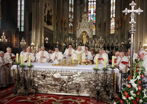 U svojoj homiliji (koju u cijelosti možete pročitati ovdje), kardinal Péter Erdö je istaknuo: „U ovoj nedjeljnoj euharistiji slavimo veliku stvarnost: ozbiljnost i dubinu zauzetosti u biskupskoj službi koja se očitovala u životu blaženoga kardinala Alojzija Stepinca, koji je ostao vjeran sve do mučeništva. To je zauzetost i izazov biskupskoga poziva s kojim se trebamo suočiti i mi, današnji europski biskupi. Kada tražimo temelj svoga jedinstva, možemo ga pronaći u samome biskupskom ređenju koje nas čini na najpotpuniji način dionicima trostrukoga Kristova poslanja. Povezuje nas s Njime, jedinim Velikim svećenikom Novoga zavjeta; povezuje nas jedne s drugima, nas današnje biskupe s biskupima koji su živjeli prije nas.“.
