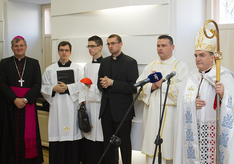 Obraćajući se okupljenima prije samog blagoslova, kardinal Bozanić rekao je kako danas ovdje prisustvujemo višestruko važnom događaju za grad Sisak. Kao društveni događaj ova zgrada nakon desetljeća napuštenosti obnovljena ulazi u službu građana i vjernika grada. Kao kulturni događaj ona je znak kulture i postaje ponos grada Siska, a na crkvenom planu važno je to da se u ovu gradu smješta uprava drevne i ponovno uspostavljene Sisačke biskupije.