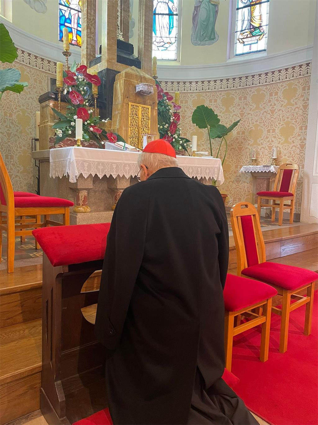 Nakon svete mise kardinal Rouco Varela ostao je u kratkoj molitvi ispred Svetohraništa na klecalu blaženoga Alojzija Stepinca. Ispred moći Blaženika Kardinal je potom izmolio molitvu