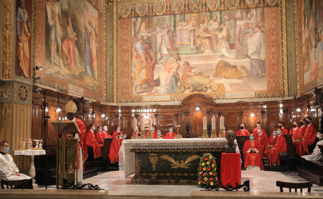 Pjevanje je predvodio zbor svećenika studenata iz Zavoda sv. Jeronima uz orguljašku pratnju Alessandra Albenga, dok su kod oltara posluživali hrvatski bogoslovi salezijanci. Zbog epidemioloških razloga tradicionalno druženje u prostorijama Zavoda ove godine nije se održalo.