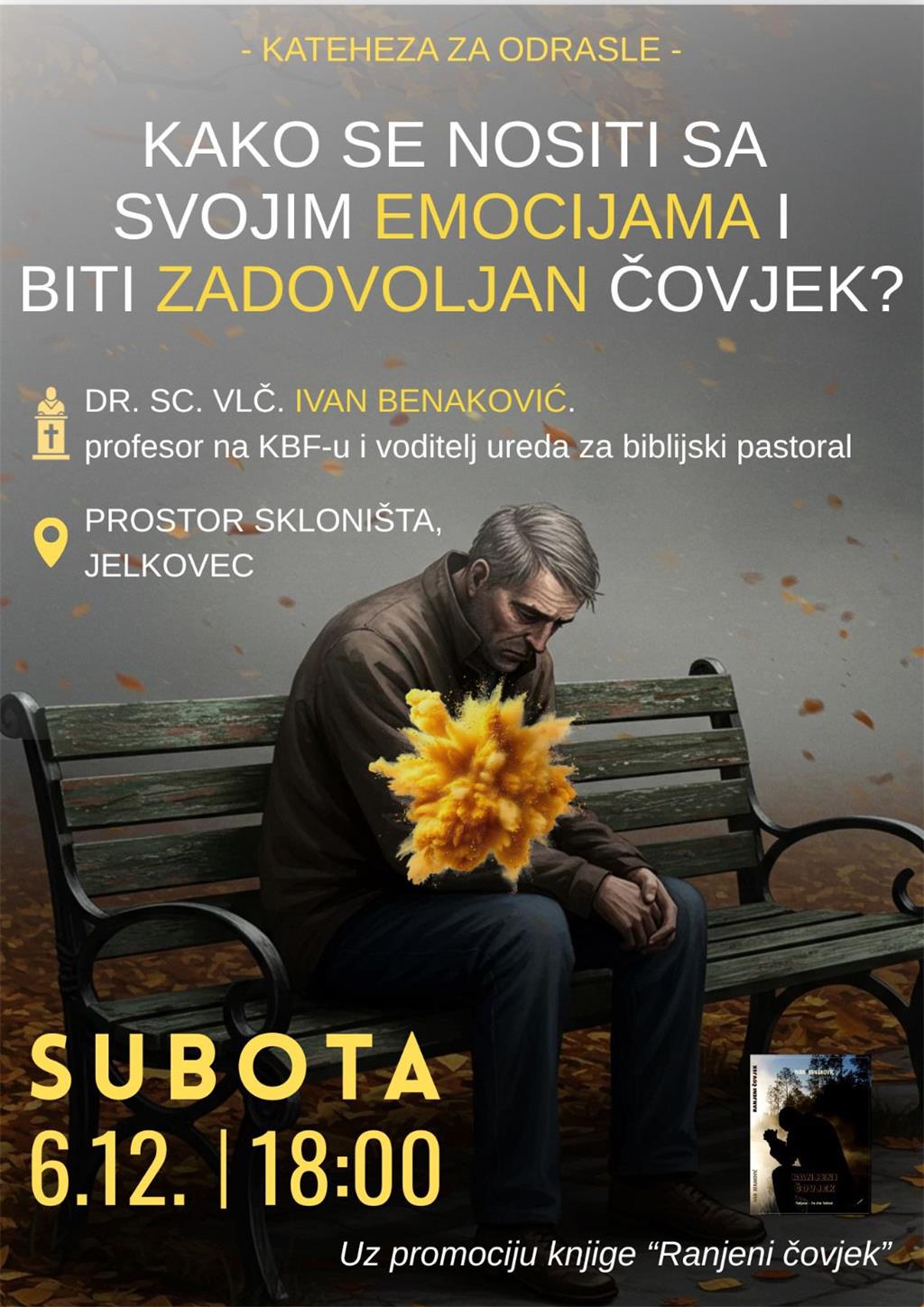 U Župi sv. Ivana Pavla II., pape u Jelkovcu u subotu 6. prosinca održat će se kateheza za odrasle koju će voditi vlč. dr. sc. Ivan Benaković, profesor na Katoličkom bogoslovnom fakultetu u Đakovu i povjerenik za biblijski pastoral Đakovačko-osječke nadbiskupije.