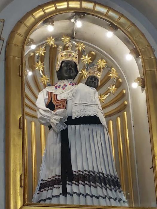 Za čudotvorni kip Majke Božje Bistričke samoborsku narodnu nošnju priredile su članice Društva sv. Izidora Seljaka prema zamisli vjeroučitelja Radovana Librića, dugogodišnjeg bistričkog hodočasnika, koji je zamolio vlč. Domagoja Matoševića, rektora Svetišta, za odobrenje ove zamisli.