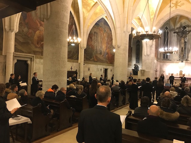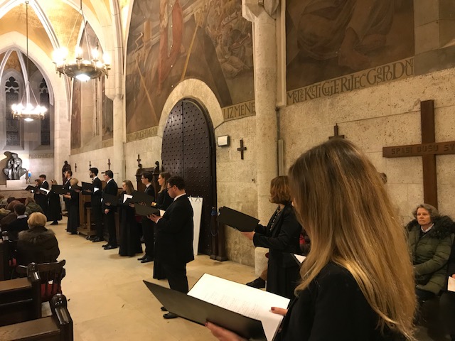 Koralni „Ave maris stella“ zbor je na početku koncerta izveo razmješten po cijeloj crkvi, što je stvorilo dojam uključenosti svih nazočnih u crkvi u taj jedinstveni koncert koji je svojim sadržajem pozvao svakog posjetitelja da osjeti duh adventa u sebi, svojoj obitelji i sa svojim bližnjima, dijeleći radost dolazećeg Božića. Dirigent Jurica Petar Petrač vodio je pjevanje zbora kroz sve navedene skladbe i razdoblja, a mješoviti muški i ženski glasovi skladno su i izražajno ispunili svodove crkve sv. Marka i uljepšali adventsku večer brojnih posjetitelja drevne gornjogradske crkve. Tom je dojmu doprinio i orguljaš crkve sv. Marka pro. Pavao Mašić, izvevši također dvije improvizacije, među kojima i obradu adventske pjesme „Raduj se grade Nazaret“. (N. P.)
