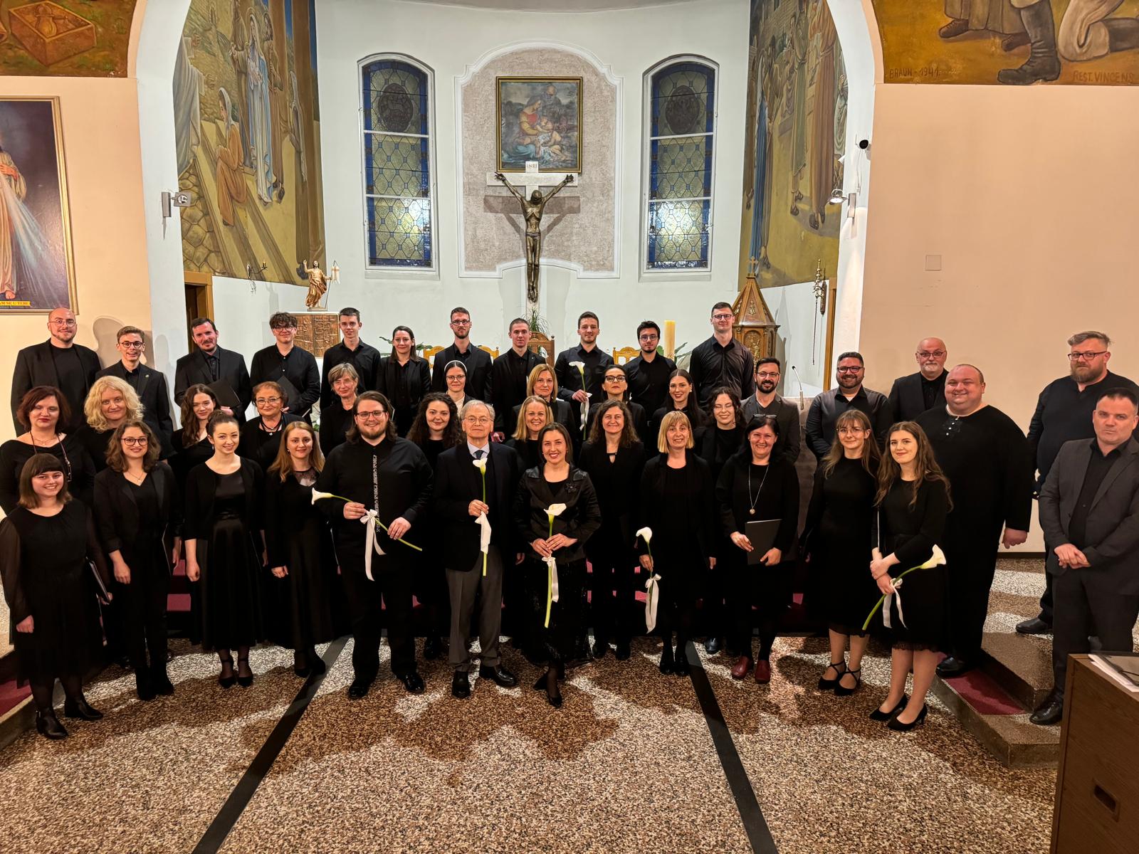 Skladno višeglasje muzicirali su udruženi zborovi Instituta za crkvenu glazbu Katoličkoga bogoslovnog fakulteta Sveučilišta u Zagrebu te mješoviti župni zbor “Marijan Mihelčić” Župe Svete Obitelji, a pridružili su im se i renomirani solisti; Josipa Lončar, sopran; Mihaela Lasić, alt; Mislav Lucić, tenor; mo. Vitomir Marof, bariton; mo. Neven Kraljić, orguljaš zagrebačke katedrale; Josipa Kraljić, alt i Marko Skender, bas. Koncert je nastao pod mentorskim vodstvom izv. prof. art. Marka Magdalenića.