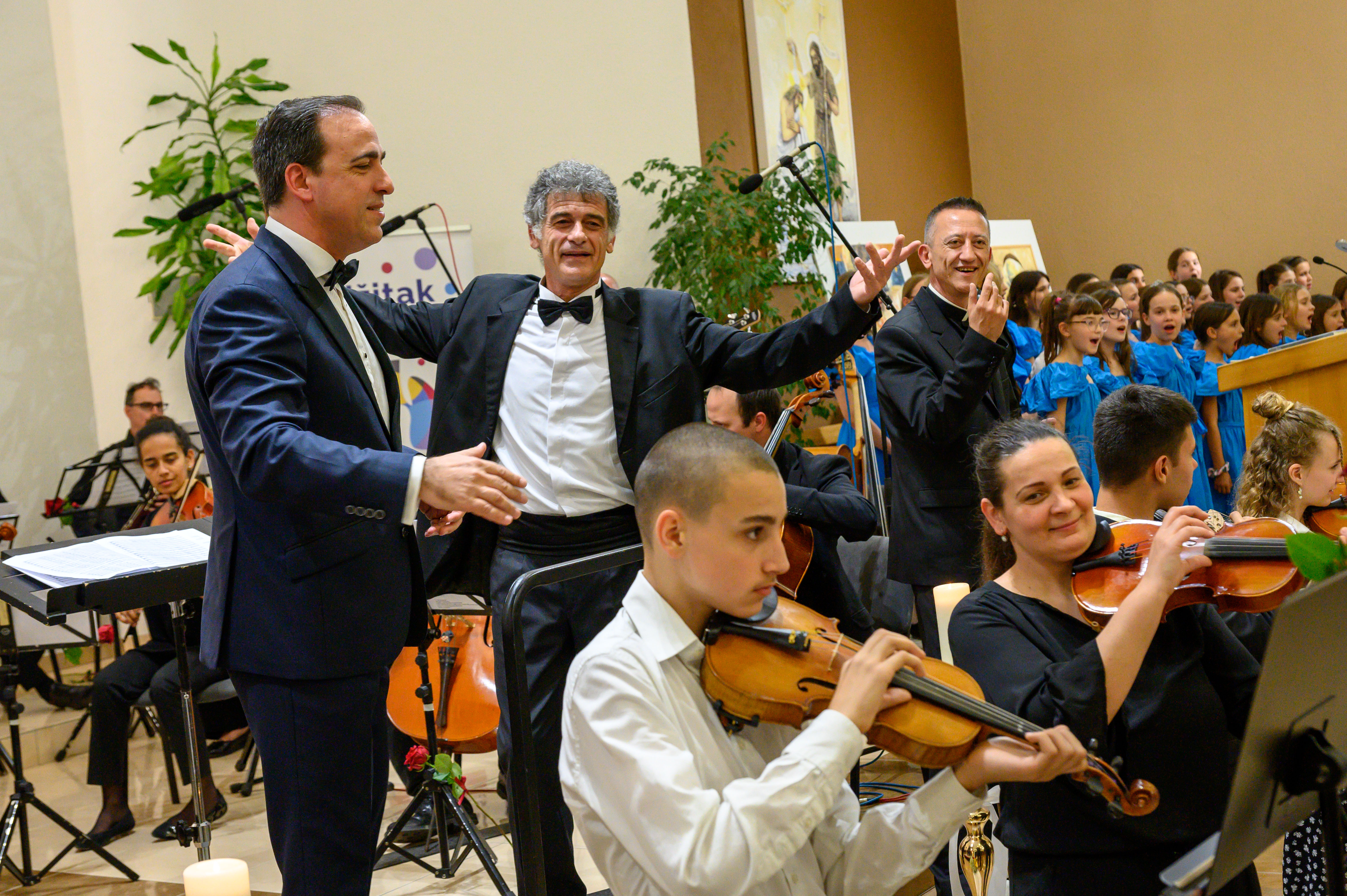 rogram su vodili voditelji Petar Pereža i Tanja Maleš. U prepunoj crkvi svoje oduševljenje nisu mogli sakriti i brojni uvaženi gosti: prvi tajnik, zamjenik šefa misije i privremeni otpravnik poslova Veleposlanstva Republike Türkiye gospodin Ertan Yılmaz, savjetnik za sigurnost i unutarnje poslove Veleposlanstva Republike Türkiye gospodin Irfan Cirit, TIKA Zagreb gospođa Sedef Bulut, iz Slovenska ambasade gospodin Gregor Štajer, ravnatelj Zagrebačke filharmonije Filip Fak, iz Brazilske ambasade gospodin Gustavo Barbosa, ministar savjetnik za kulturni sektor, doktorica znanosti dr. sc. Mirna Sabljar, koordinatorica za studente s invaliditetom i umjetnička voditeljica Koncertnog ciklusa "Crveno" Sandra Karabatić, Predsjednica Udruge Jedra - Udruga za pomoć oboljelima od raka pluća, te izaslanik zagrebačkog nadbiskupa Dražena Kutleše monsinjor Zvonimir Sekelj.