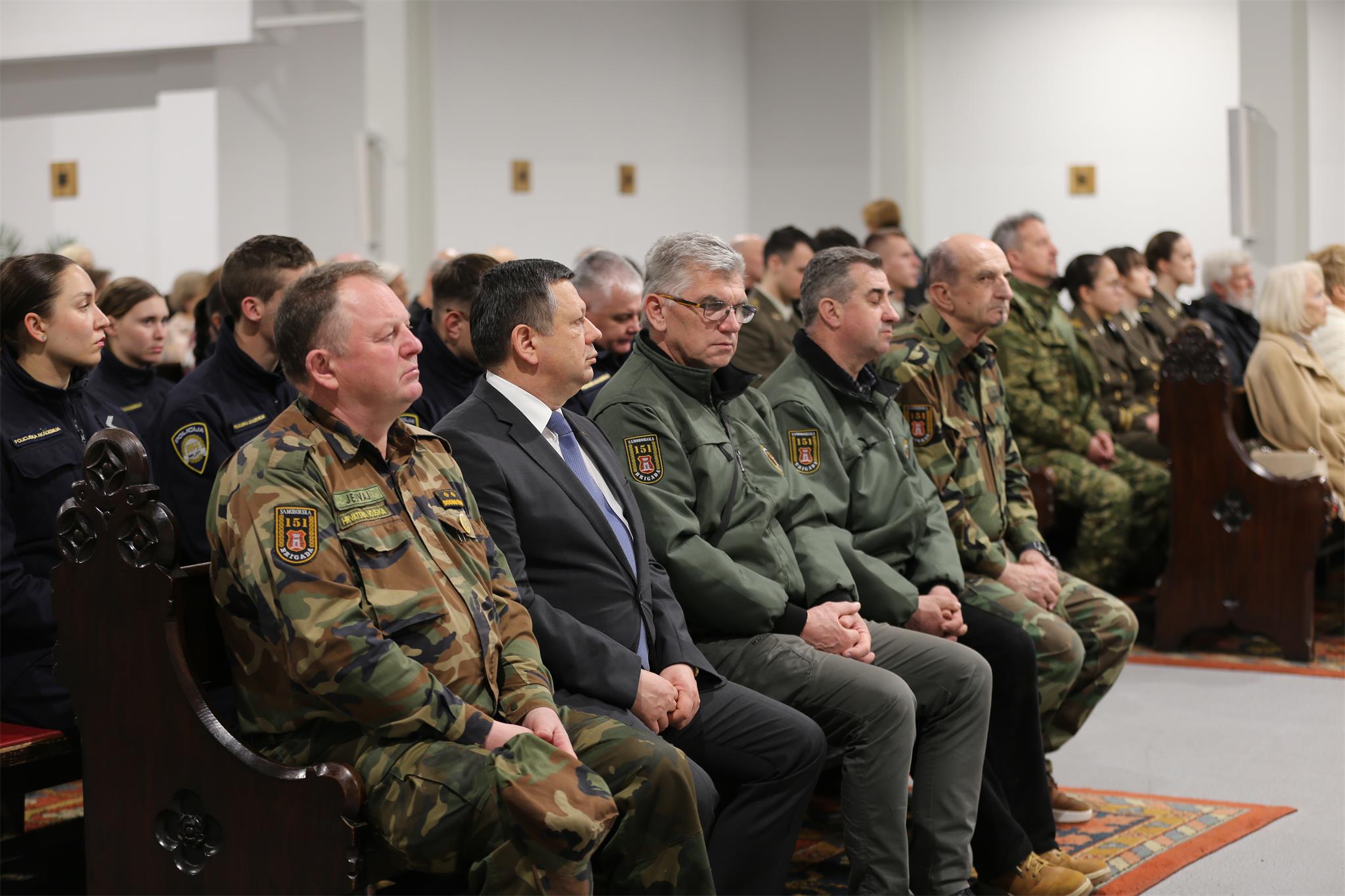 Govoreći mladima, mons. Šaško rekao je kako mu je drago vidjeti da su "ovdje s nama oni koji znaju što znači hrvatska odora, ali moraju ispod te odore vidjeti i svoje starije kolege i kolegice, one koji su nosili takve odore koje su bile prašnjave, krvave, različite, ali su uvijek čuvale ljepotu svoje Domovine."