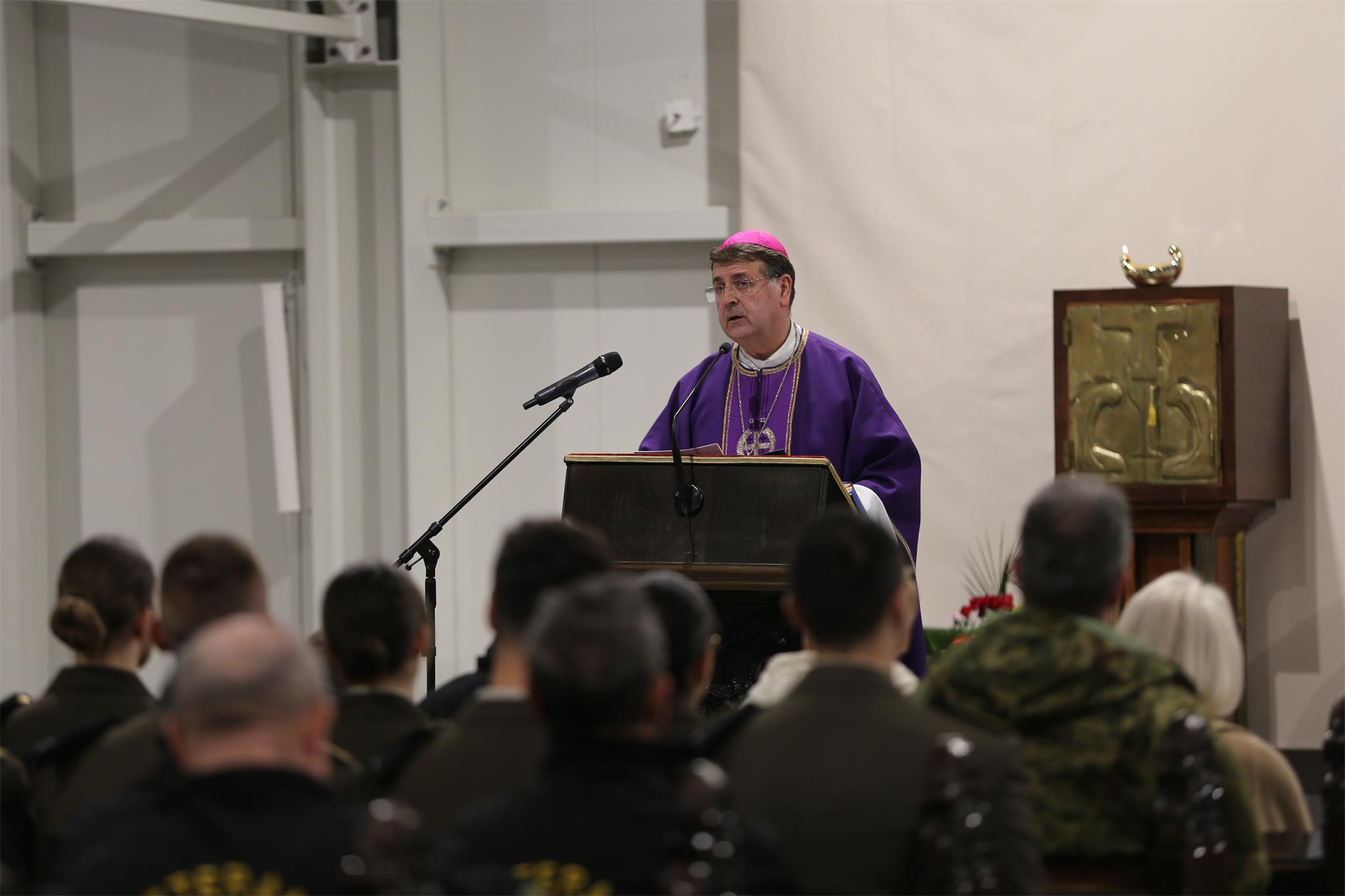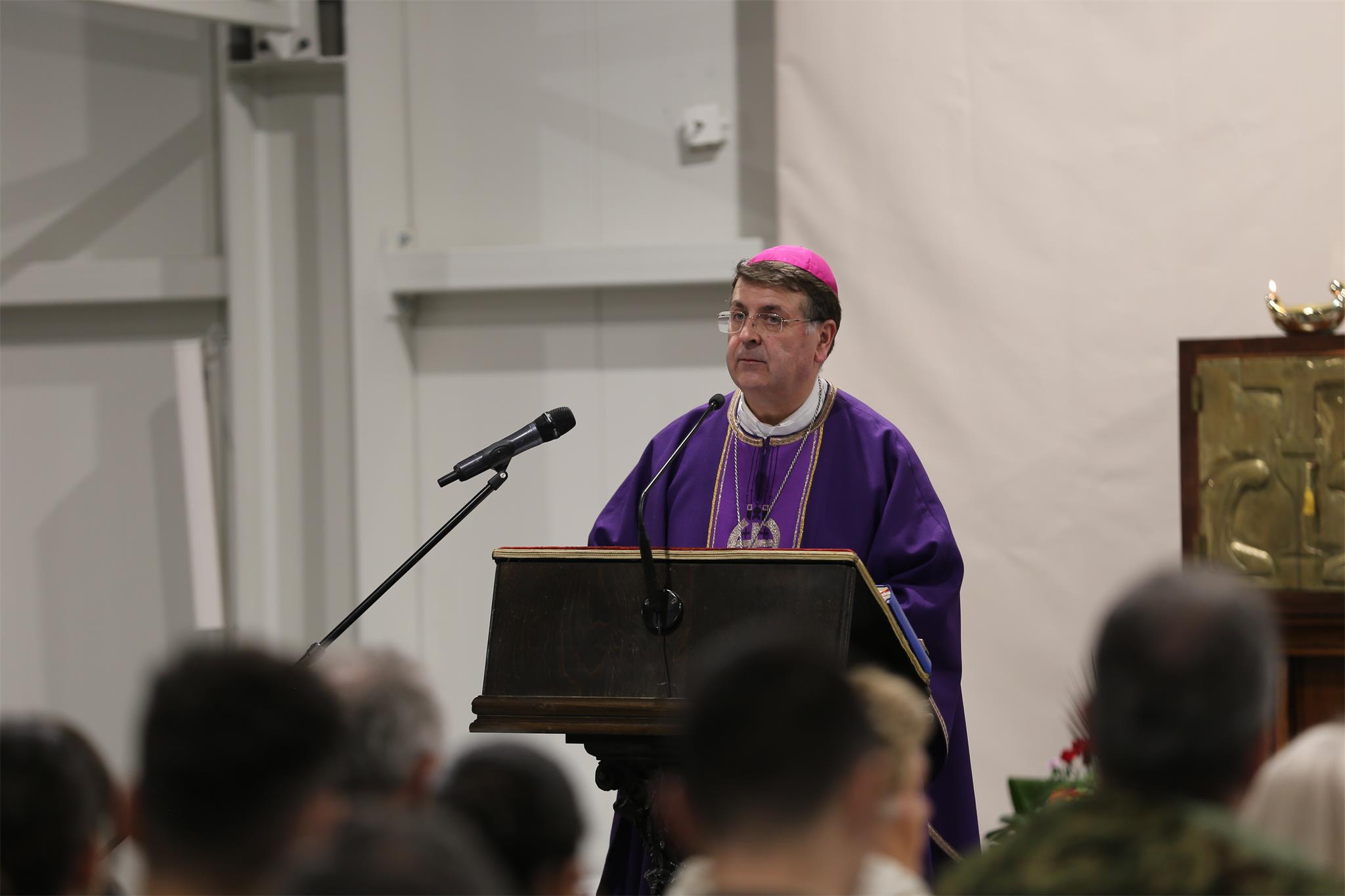 Obraćajući se braniteljima biskup je kazao: "Dragi vjernici, obranu domovine u ratu koji je pokrenut protiv svega hrvatskoga možemo gledati kao dio događaja u nizu povijesnih događaja. I ljude u njima možemo gledati kao dio okolnosti, ali kao vjernici, mi gledamo sve - kao dio otajstva Kristove muke i uskrsnuća. I ljude koji su sebe stavili u službu dobra, istine i ljubavi kao dar toga otajstva. Takvi ljudi nalaze se u imenu hrvatskih branitelja."