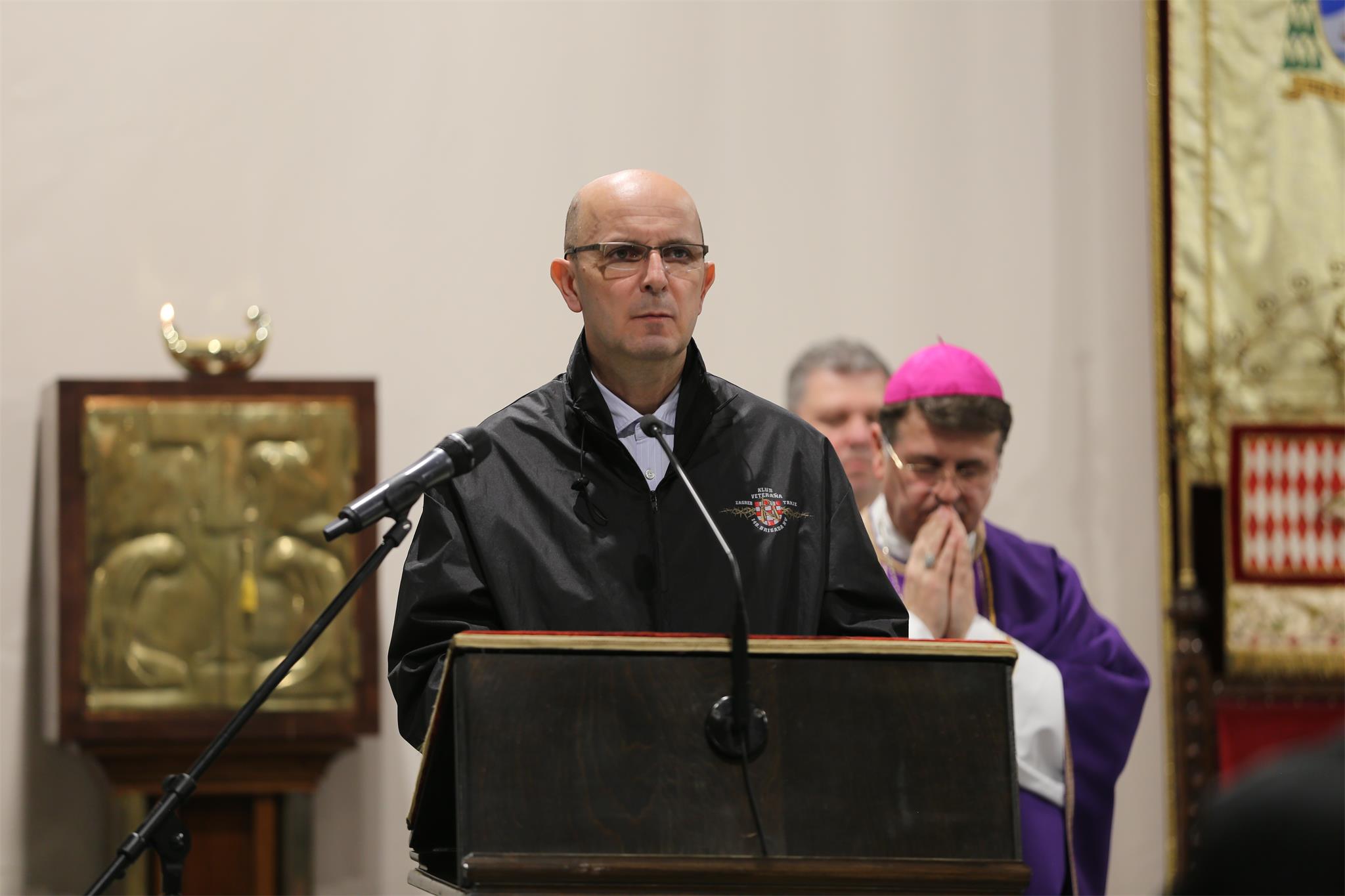 Na početku križnoga puta biskup Šaško istaknuo je kako je „posebno želio da ove godine stanemo pred rane i ranjenosti svoje domovine. Osjećamo koliko je ranjena u prošlosti, ali i koliko se danas ranjava. Pred ranama zastajemo, ali u njima ne ostajemo. Želimo ih liječiti nadom i prolazeći 14 postaja susrećemo 14 ranjenosti našega Spasitelja, 14 ranjenosti naših života, 14 ranjenosti domovine. Sigurno ćete i vi, braćo i sestre, dodati neku svoju ili neku zajedničku. I ne zaboravimo, upravo su hrvatski branitelji stanoviti model jer su povezali ranjenosti i nade. Zato večeras molimo s njima zahvalni Gospodinu za svaki njegov dar.“