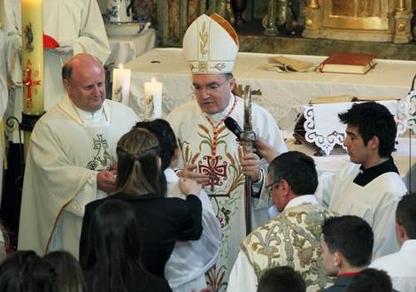Obrazlažući katekizamski raspored sakramenata napomenuo je znakovitost redoslijeda u kojemu sv. potvrda stoji između krštenja i euharistije te naglasio da je Duh Sveti onaj koji vjernike katolike upućuje na euharistiju. Osvrnuvši se na evanđeoski odlomak pročitan u službi riječi, objasnio je posebnost ljubavi koju nam zapovijeda Isus, a ta ljubav spremna je na žrtvu i odricanje radi voljene osobe.
