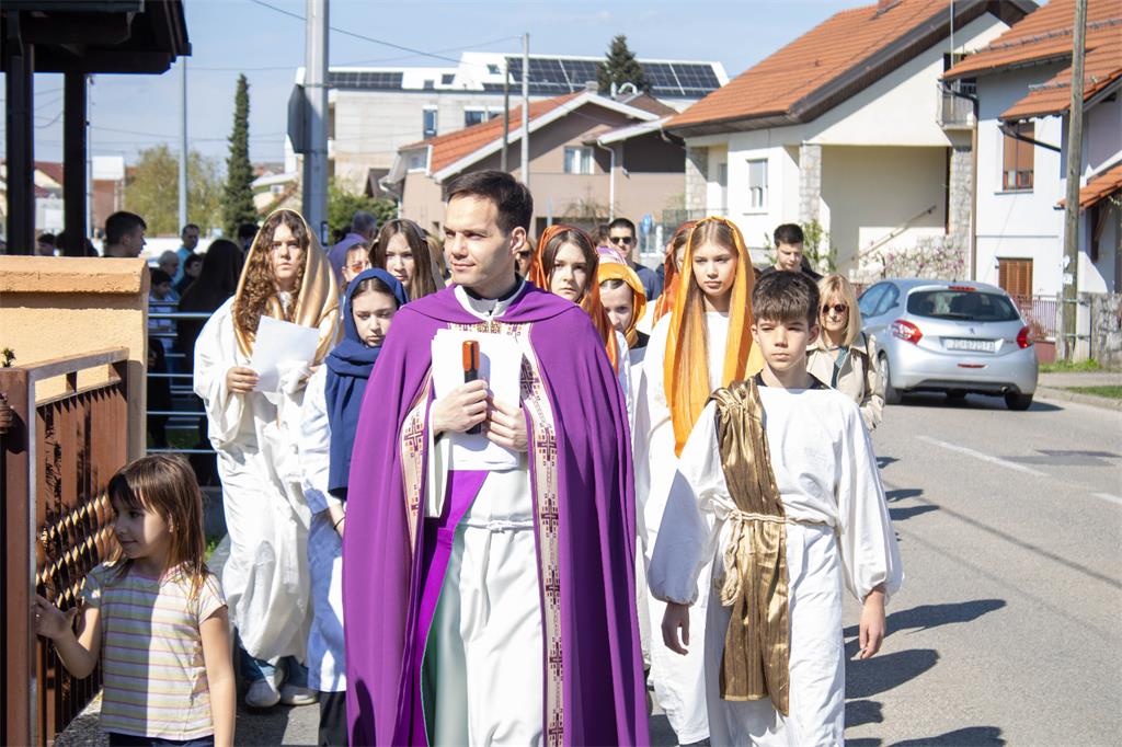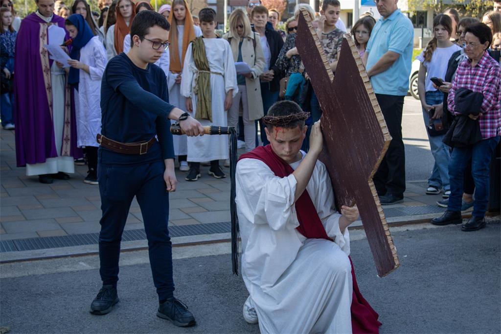 Krizmanici Župe Navještenja Blažene Djevice Marije u Velikoj Gorici predvodili su u subotu 5. travnja križni put ulicama Župe uz scenski prikaz Muke Gospodnje.