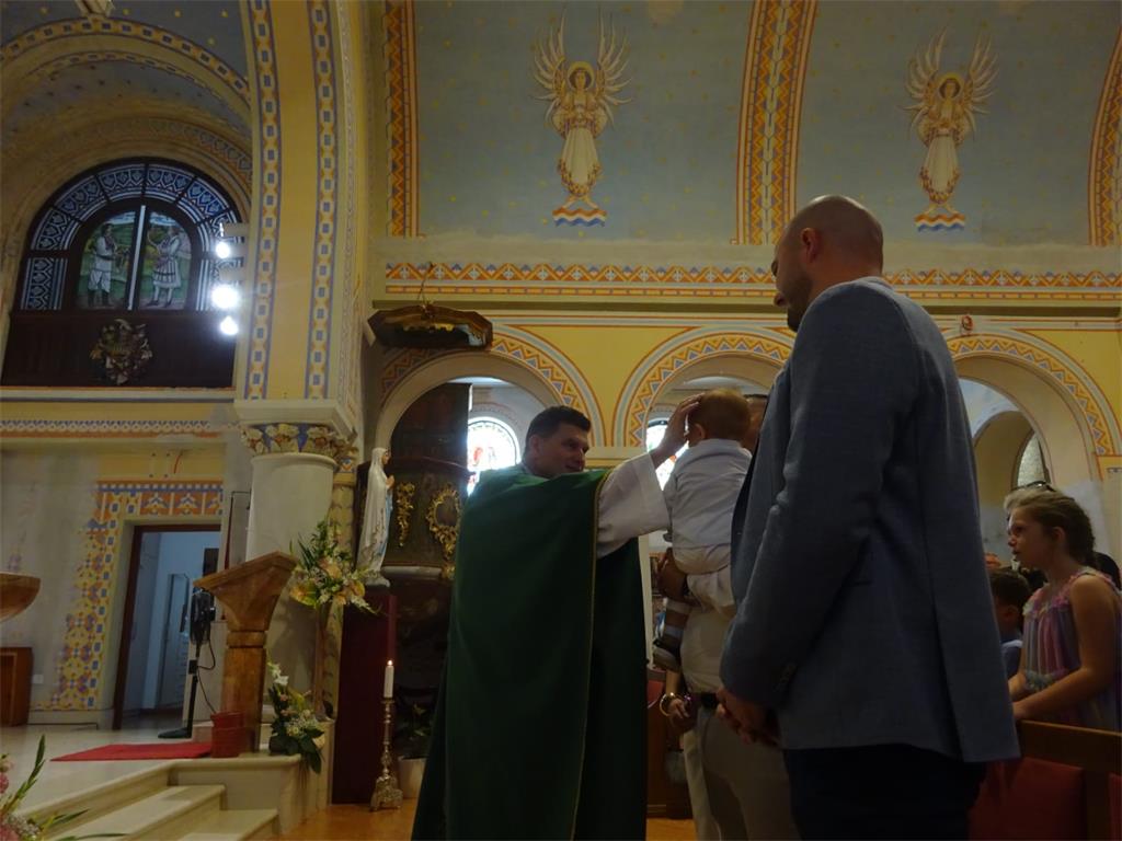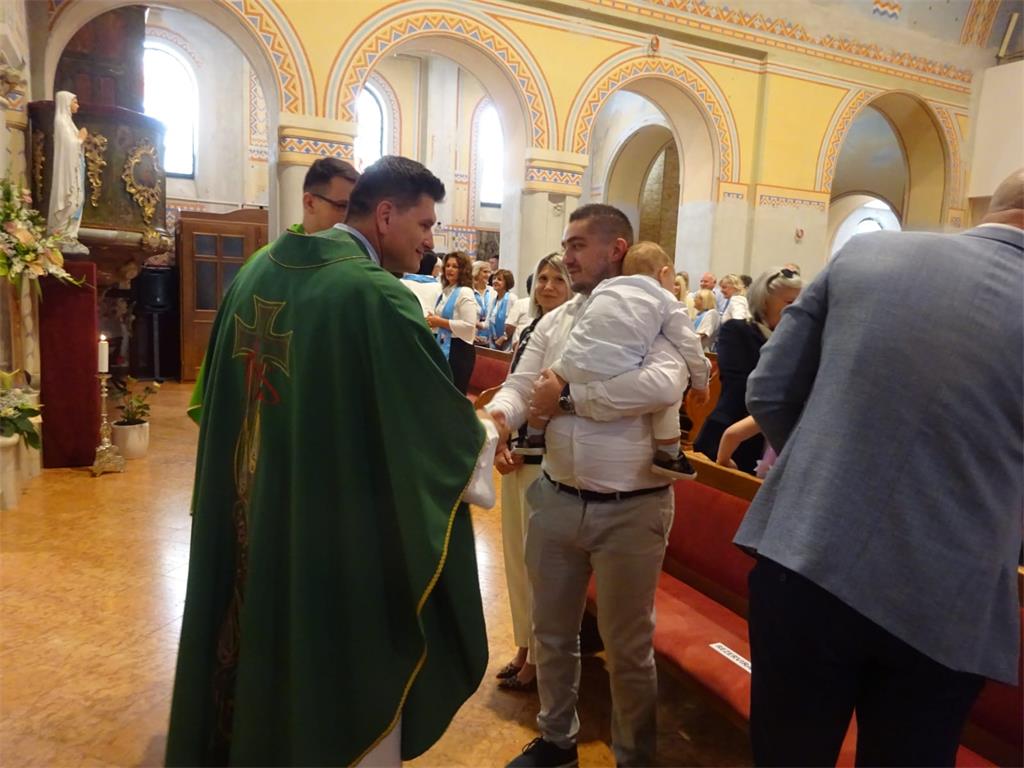 Svetu misu predvodio je preč. Domagoj Matošević, moderator Nadbiskupskog duhovnog stola, koji je i podijelio sakrament krštenja dječaku Janu.