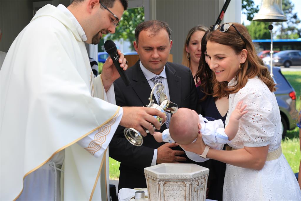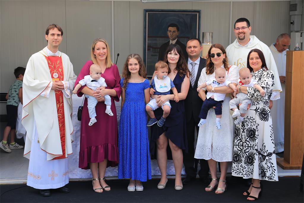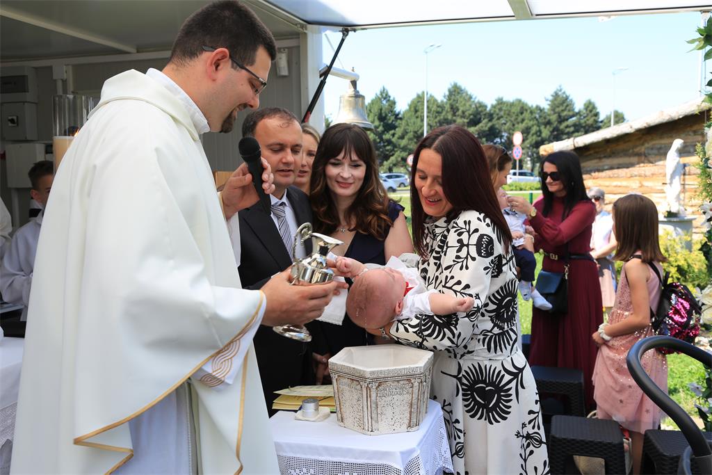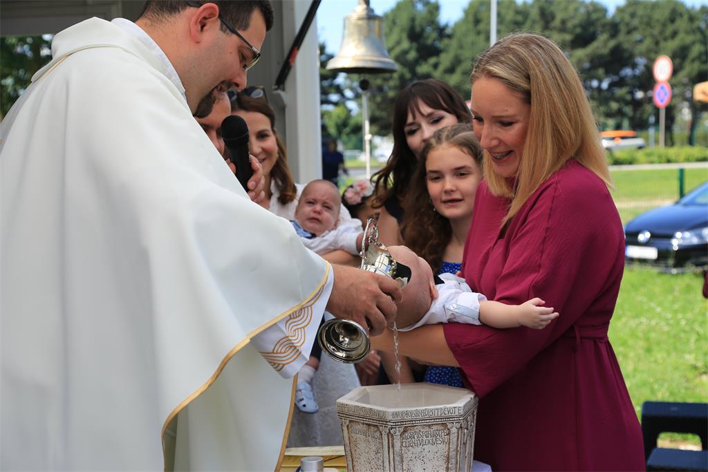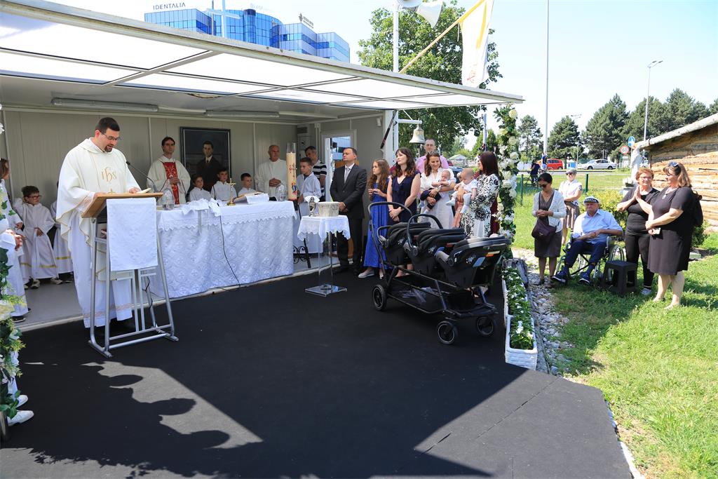 Na početku misnog slavlja upravitelj Župe vlč. Marko Čolak, pozdravljajući župljane i obitelj Kopić, izrazio je radost što baš na svetkovinu Presvetoga Trojstva krštenjem trojčeka Vida, Tome i Marina u našu župnu zajednicu i Crkvu primamo tri nova života.
