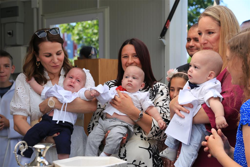 U Župi bl. Ivana Merza u zagrebačkom naselju Špansko, na župnoj livadi na križanju Zagrebačke ulice i Zagrebačke avenije, na svetkovinu Presvetoga Trojstva kršteni su trojčeki, tri sina obitelji Kopić.