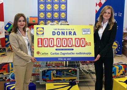 Lidl Hrvatska, u sklopu projekta »Socijalna košarica – podjela pomoći u naravi«, darovao je Caritas Zagrebačke nadbiskupije dječjom odjećom, obućom i igračkama u vrijednosti većoj od 100.000 kuna.