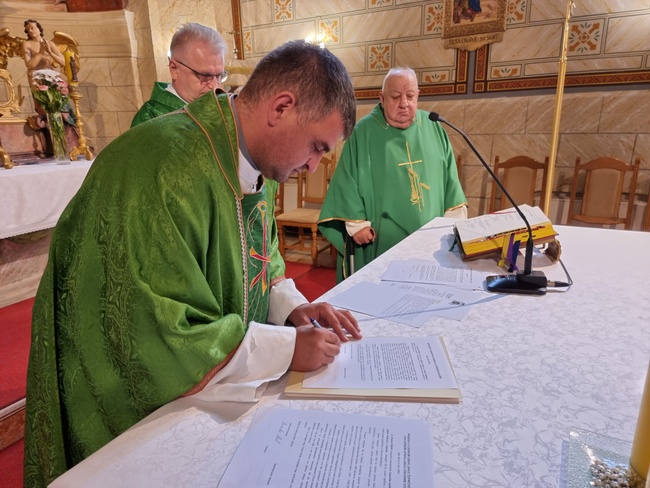 Također, pred svim vjernicima pročitana je biografija novog župnika i predstavljen njegov dosadašnji rad u pastoralu. Novi župnik izrekao je ispovijest vjere i župničku prisegu nakon čega je uz dvojicu svjedoka potpisao dokument o preuzimanju župe.