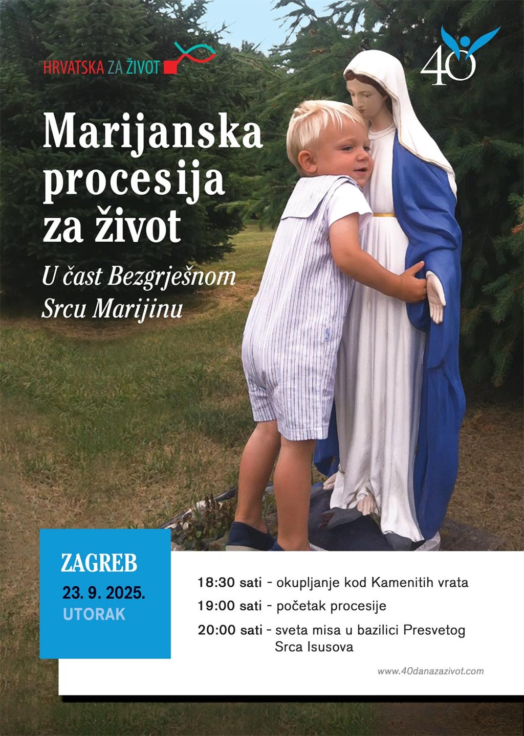 Od 24. rujna do 2. studenog 2025. u svijetu i u Hrvatskoj održat će se molitvena miroljubiva kampanja za prestanak pobačaja i pobjedu kulture života u sklopu inicijative "40 dana za život".