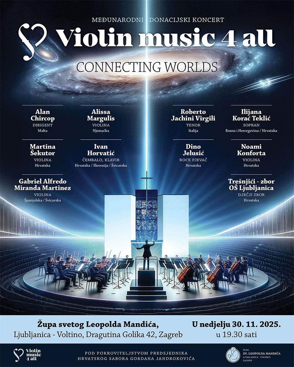 U Župi sv. Leopolda Mandića, Ljubljanica-Voltino održat će se Međunarodni koncert projekta "Violinmusic4all" 30. studenoga 2025. s početkom u 19:30 sati. Koncert se održava pod pokroviteljstvom predsjednika Hrvatskog sabora Gordana Jandrokovića.
