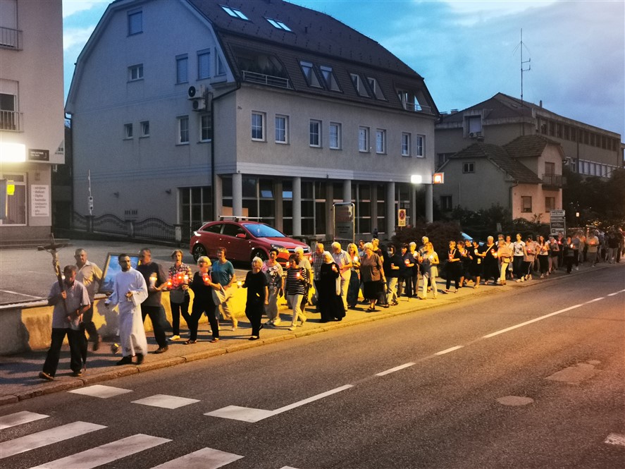 Nakon misnoga slavlja uslijedila je procesija s upaljenim svijećama i pjevanjem marijanskih pjesama prema župnoj crkvi svete Jelene Križarice pred špilju Gospe Lurdske.